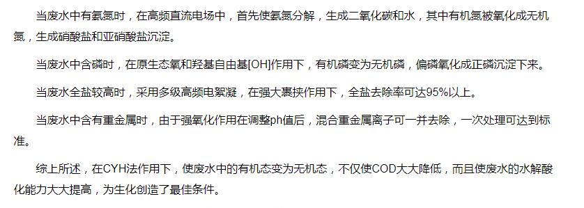 超強(qiáng)氧化還原廢水處理裝置(CYH法)處理各種有機(jī)廢水、各種重金屬廢水